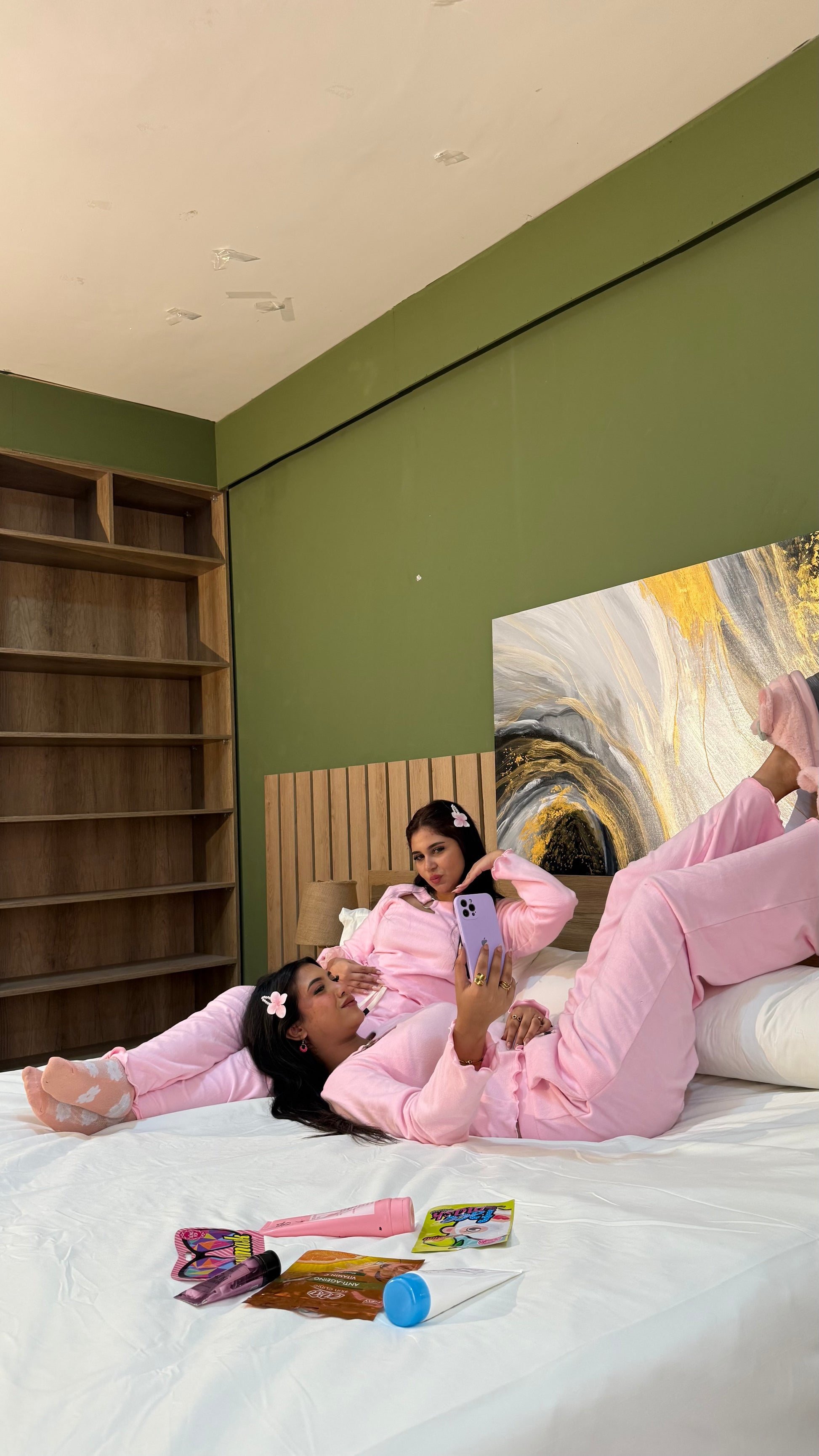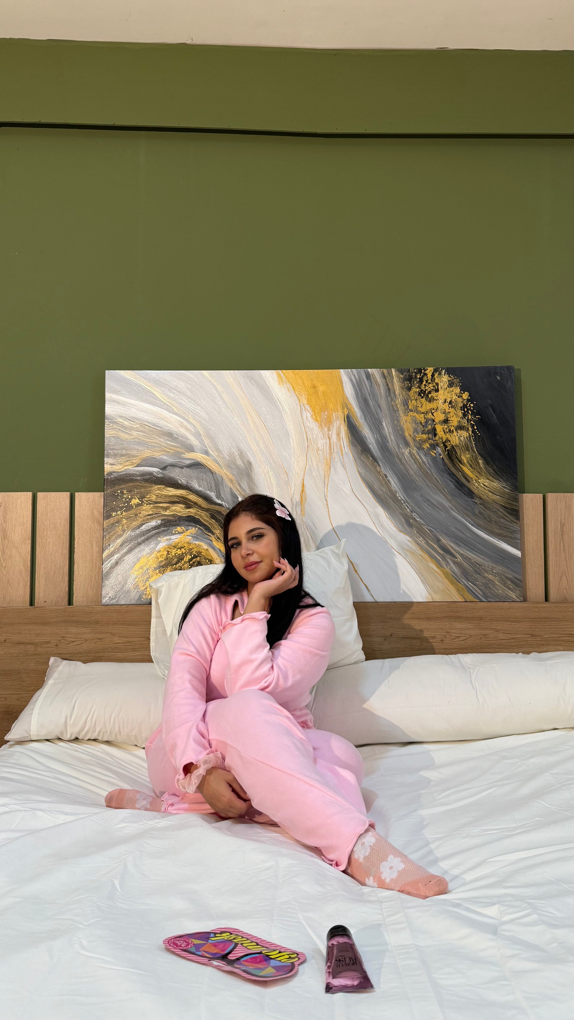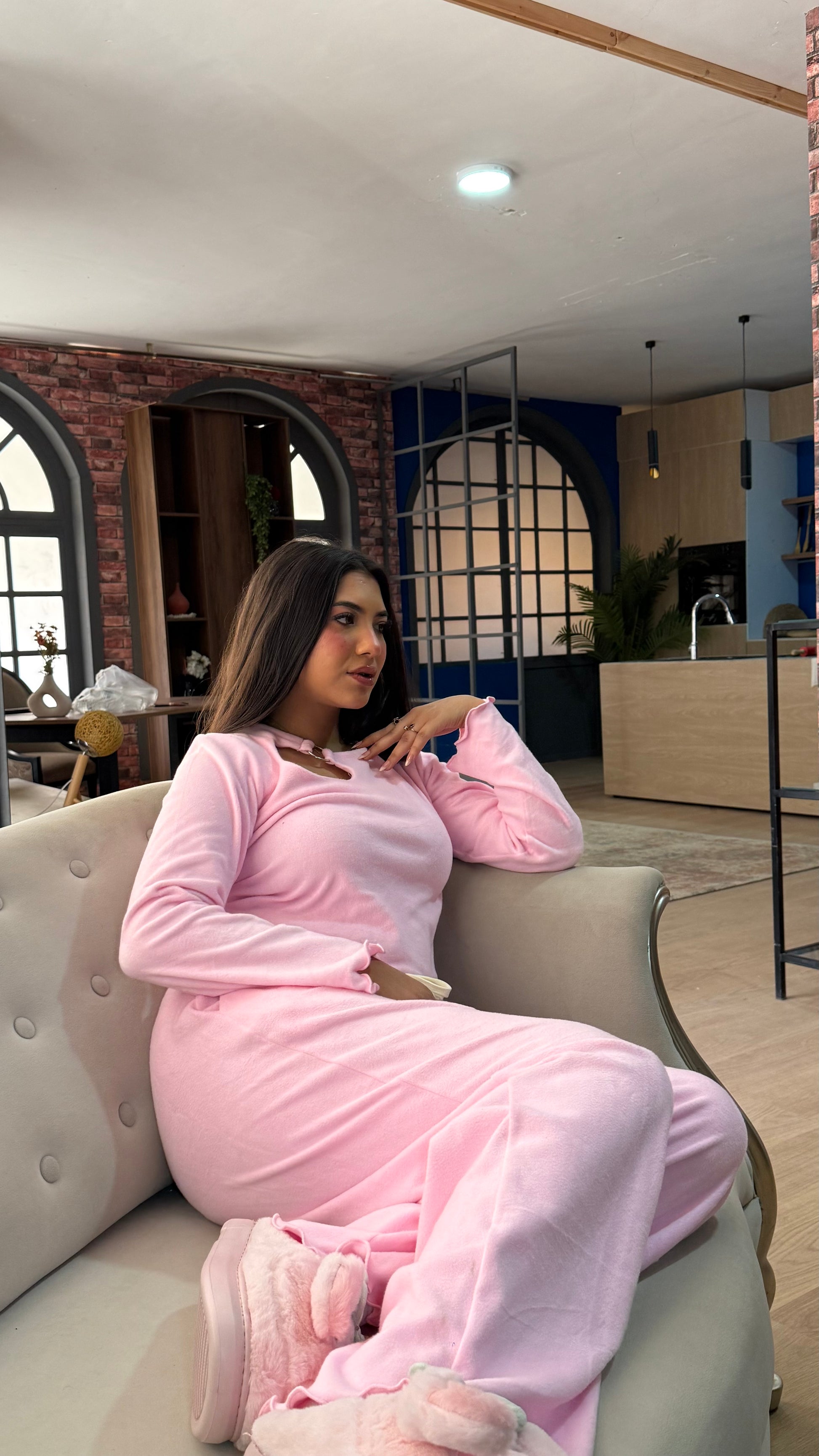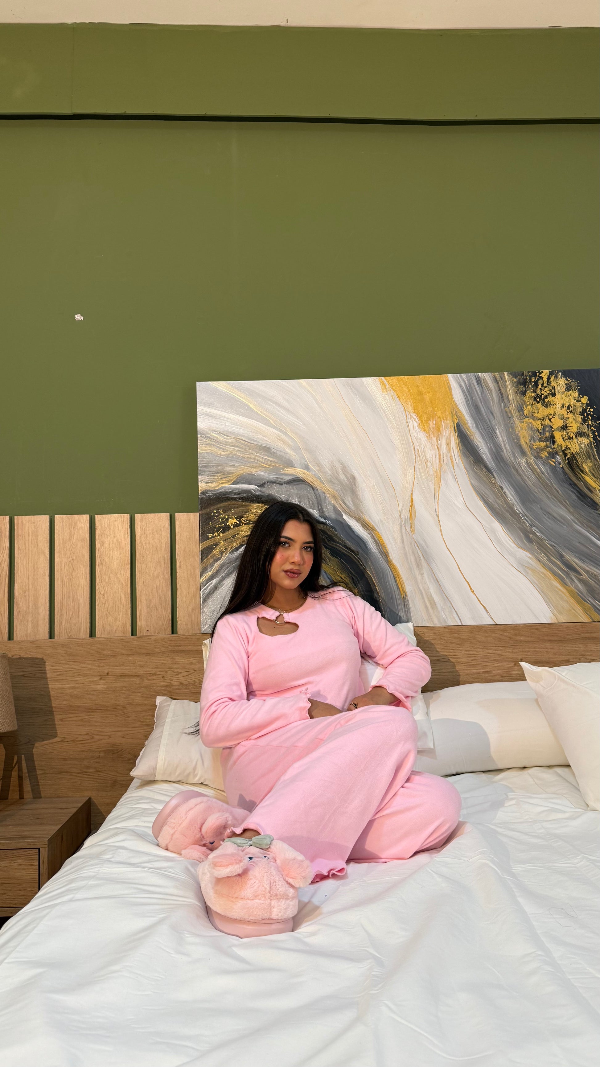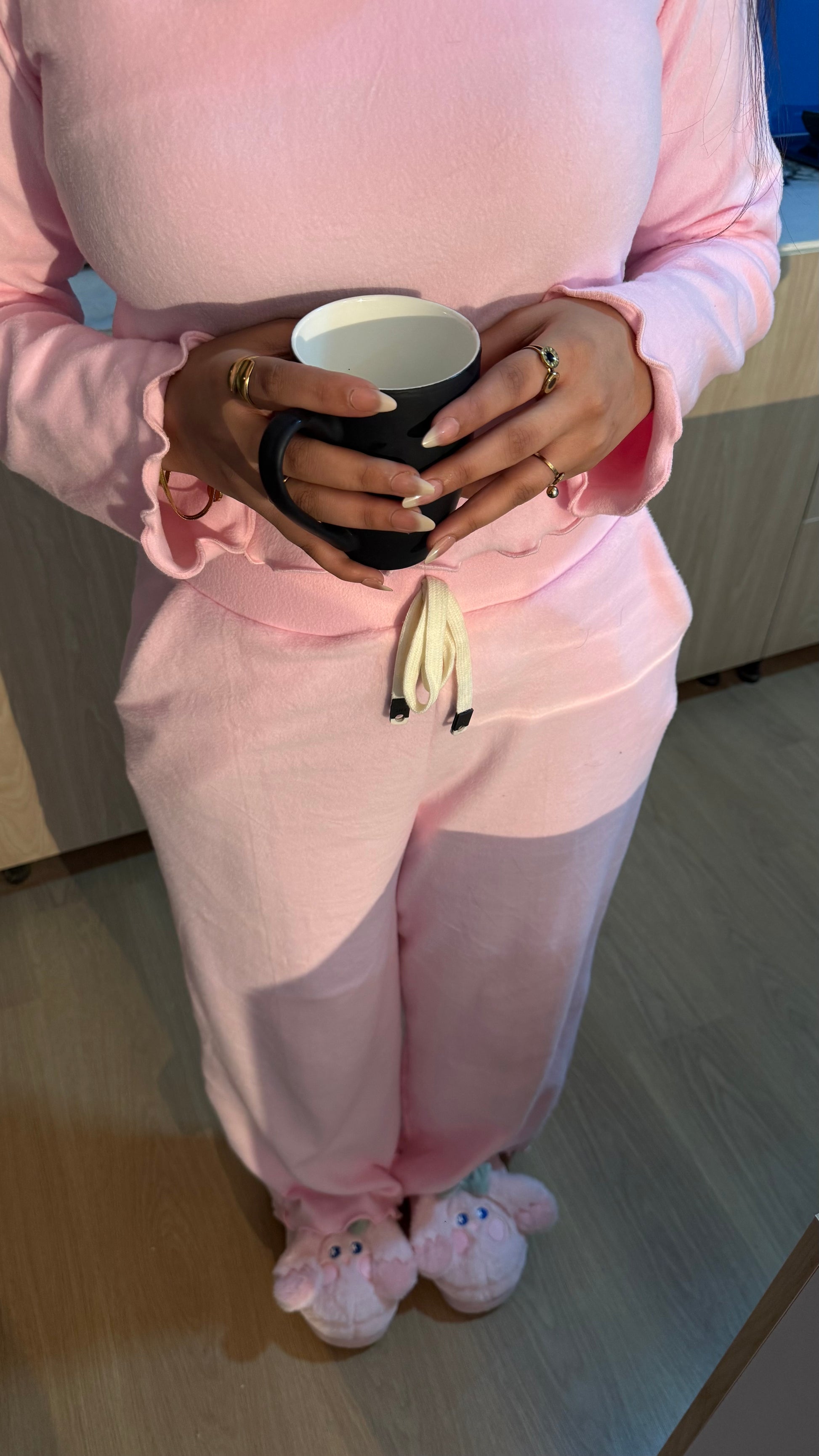 Meet our newest pink pajama set — irresistibly soft, warm, and made for your coziest nights. The pants feature a charming ‘shy’ waistband that adds a playful touch, inspiring the name ‘Why So Soft?’ because once you feel it… you’ll wonder why you ever wore anything else.”